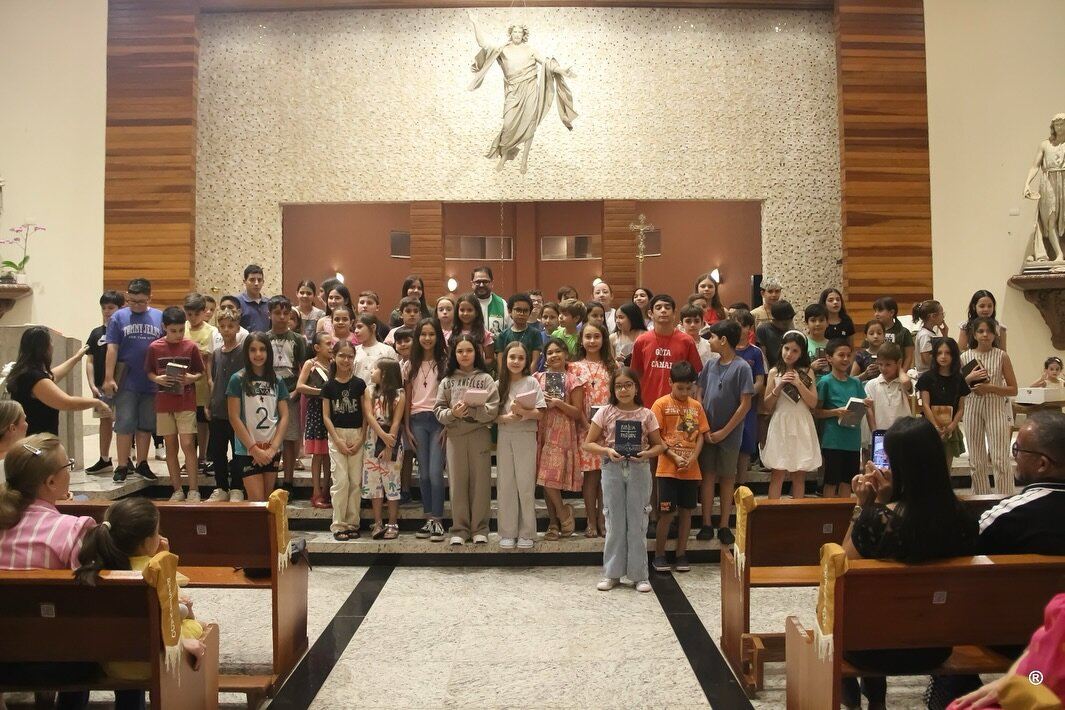 Na última quinta-feira, 18 de setembro, nossas crianças da catequese viveram um momento muito especial: o rito da entrega da Cruz e da Bíblia.