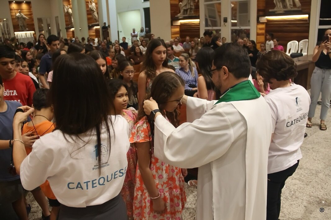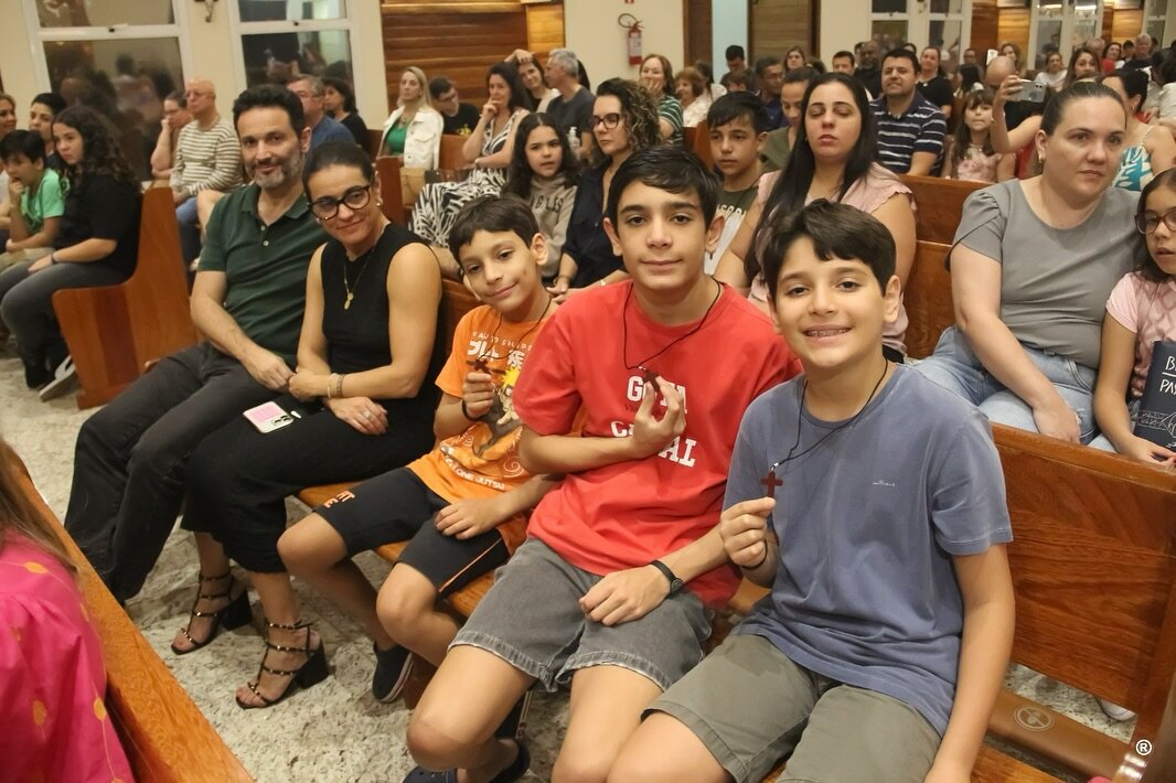 Foram 80 crianças recebendo esses dois sinais tão importantes da nossa fé: