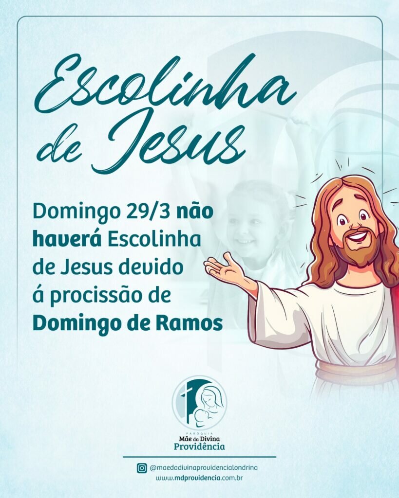 Neste domingo, 29/3, não teremos a Escolinha de Jesus, por causa da programação especial do Domingo de Ramos.