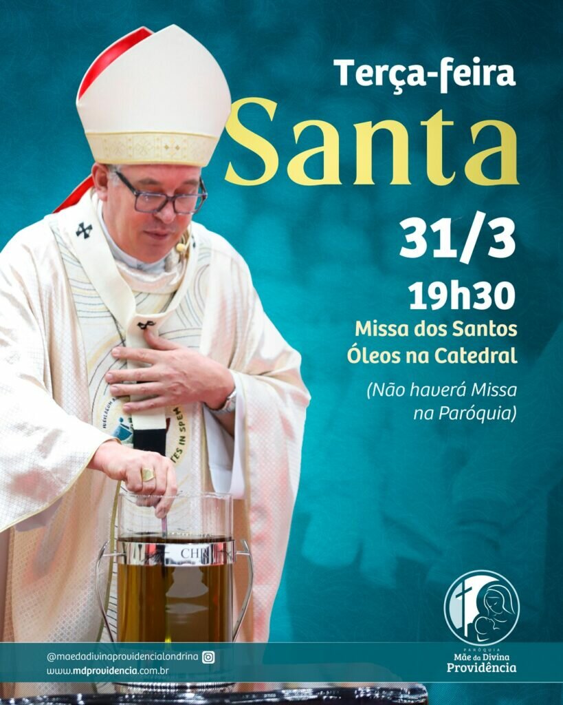 Na próxima terça-feira, 31/3, às 19h30, acontece a Santa Missa dos Santos Óleos na Catedral.